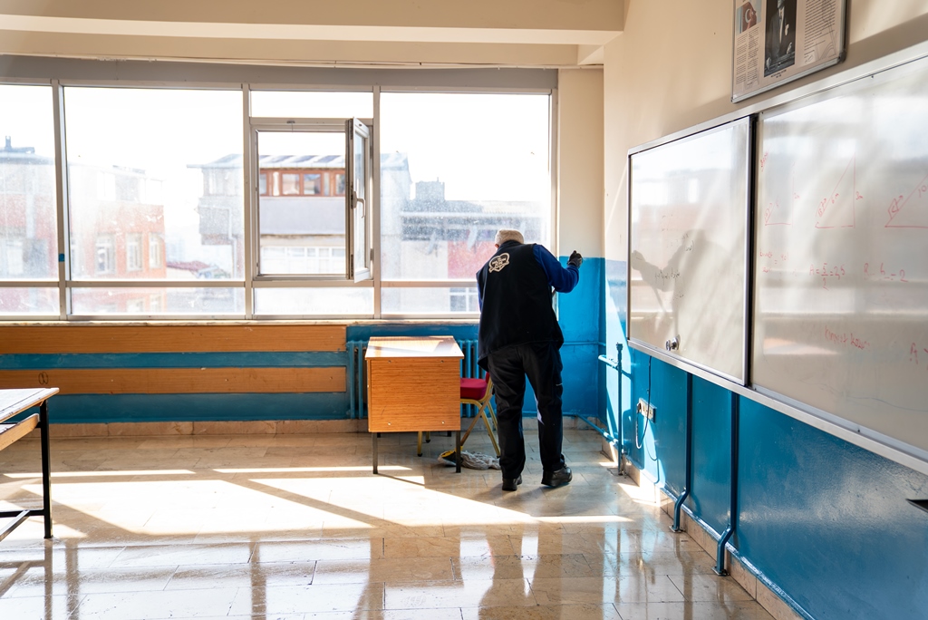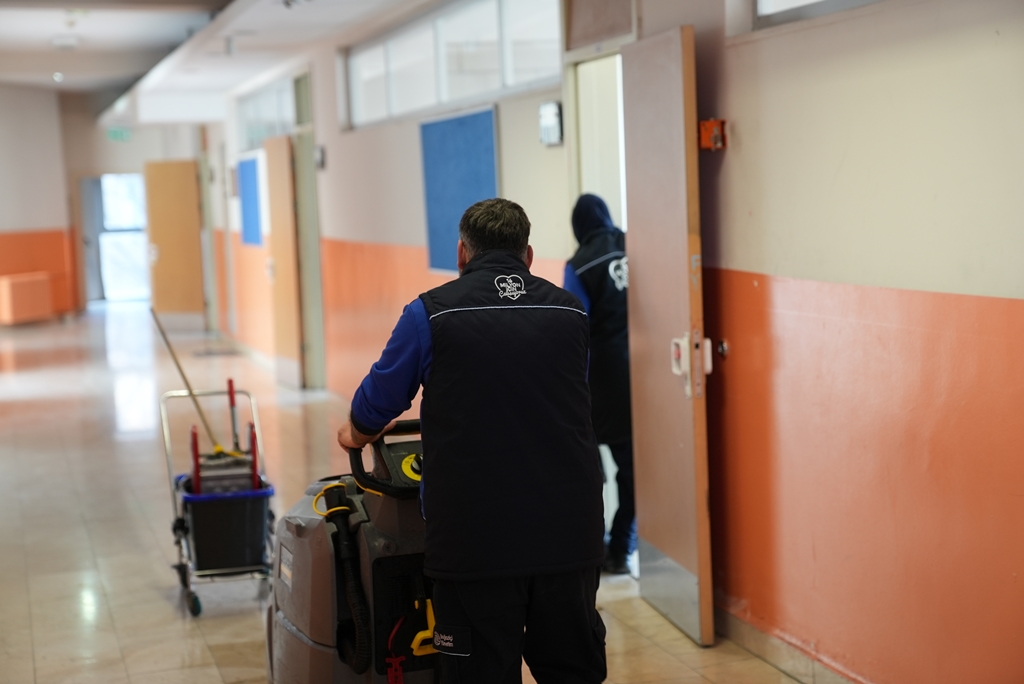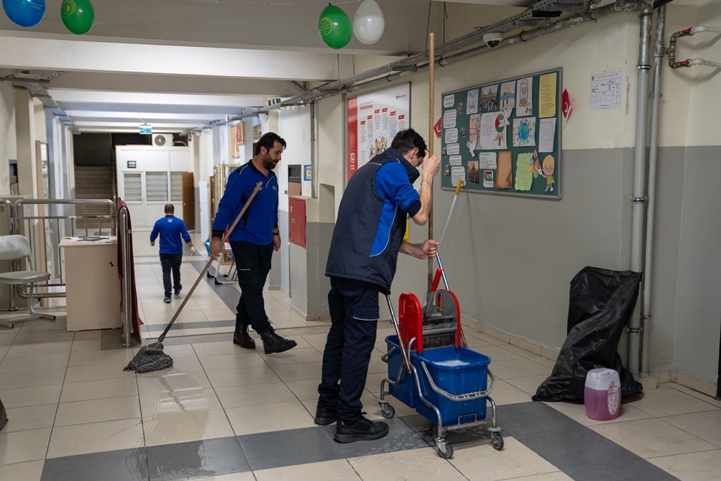Gençlik Hizmetleri Şube Müdürlüğü tarafından yürütülen Temiz Okul Projesi kapsamında; öğrencilerin daha sağlıklı, hijyenik ve düzenli ortamlarda eğitim alabilmeleri amacıyla eğitim kurumlarına temizlik hizmeti sunulmaktadır. Temizlik çalışmaları, İBB Temiz Okul ekibi tarafından standartlara uygun şekilde yürütülmekte olup sınıflar, koridorlar, ortak kullanım alanları ve hijyen gerektiren tüm bölümlerde kapsamlı temizlik uygulamaları gerçekleştirilmektedir.
