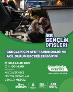 27 Aralık’ta başlayacak olan Afet Farkındalığı ve Acil Durum Becerileri Eğitiminde ise deprem başta olmak üzere afet türlerine yönelik gençlerin temel farkındalık kazanması; acil durum çantası hazırlanması, afet sırasında doğru davranış yöntemlerini benimsemeleri ve afet sonrasında iletişim yöntemleri gibi konularda bilgi edinme fırsatı yakalayacak.