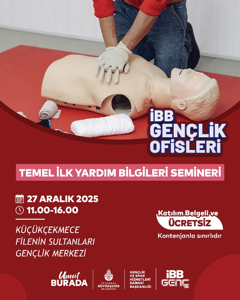 İBB’nin Gençlik Ofisleri 2019 yılından bu yana gerçekleştirdiği eğitim, kişis el gelişim ve gençlerin istihdamlarına yönelik kurs ve seminer programlarının yanı sıra acil durumlarda hayati öneme sahip ilk yardım kurslarına da başlıyor.