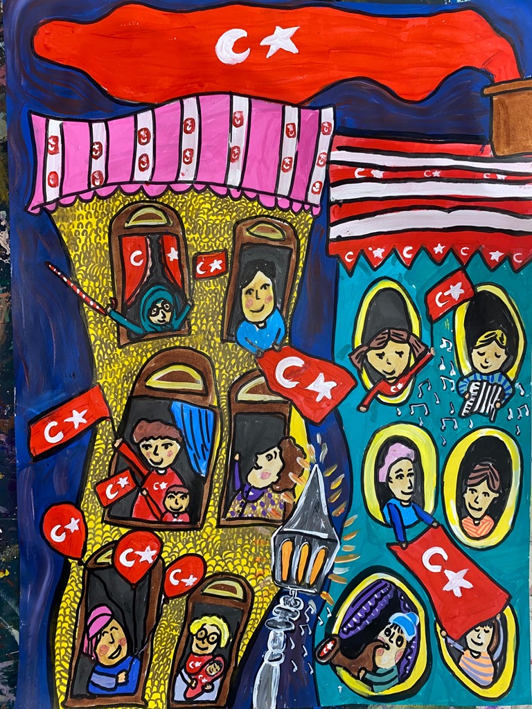 1. ve 4. sınıf arası öğrencilere yönelik düzenlenen “Atatürk ve Cumhuriyet” konulu resim yarışmasına katılan öğrencilerin eserleri konuya uygunluk, görsel anlatım gücü, renk ve kompozisyon dengesi, yaratıcılık, denge ve teknik beceri kriterlerine göre değerlendirildi.